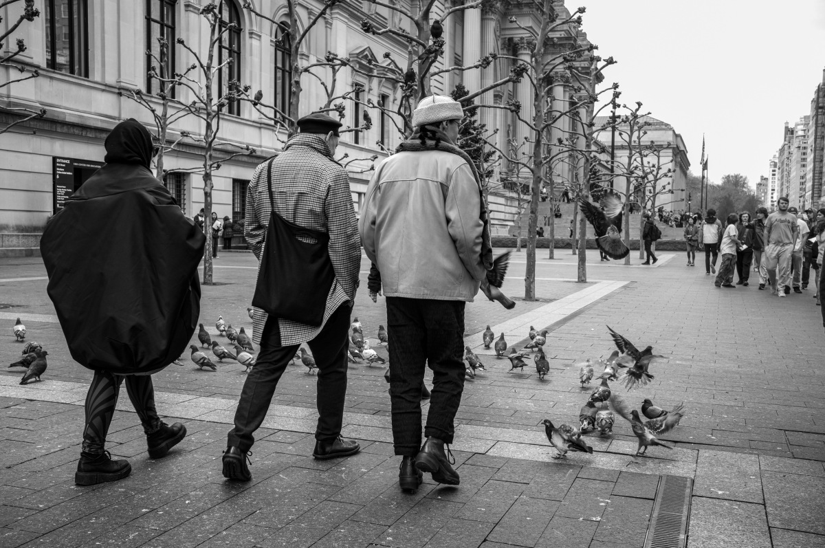The next day was gloomy and overcast. A perfect opportunity to test in flat light. I was meeting up with Nathan Kellum, Product Communication Specialist at Leica USA. He was in town meeting with press and product reviewers in preparation for the M11M launch. Nathan is an accomplished photographer himself, generating many of the official proof of performance images you may have seen on recent camera introductions. Amazingly though, we never had a chance to go shooting together. Luckily, our schedules aligned and we connected outside the Metropolitan Museum of Art, where I immediately got distracted by the excellent street photography opportunities and sidewalk pigeons.