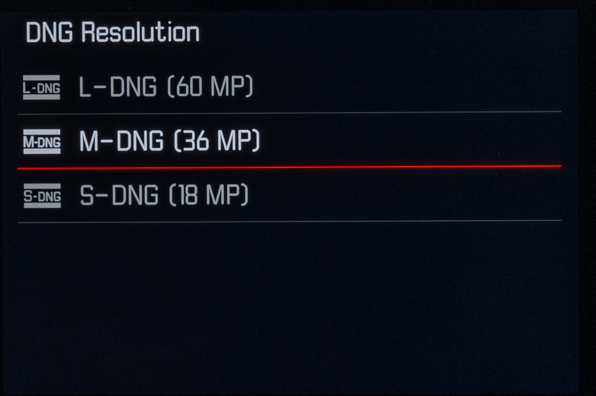 During my testing of the M11 last year, I found high ISO performance and file malleability appears to be identical in real-world scenarios for L-DNG and M-DNG. Since then, I simply leave the M11 set to L-DNG all the time. Personally, I prefer the highest resolution available, especially for testing, so I opted for L-DNG for all my M11 Monochrom images as well. If your workflow would benefit from smaller files, choose the 36MP M-DNG setting.