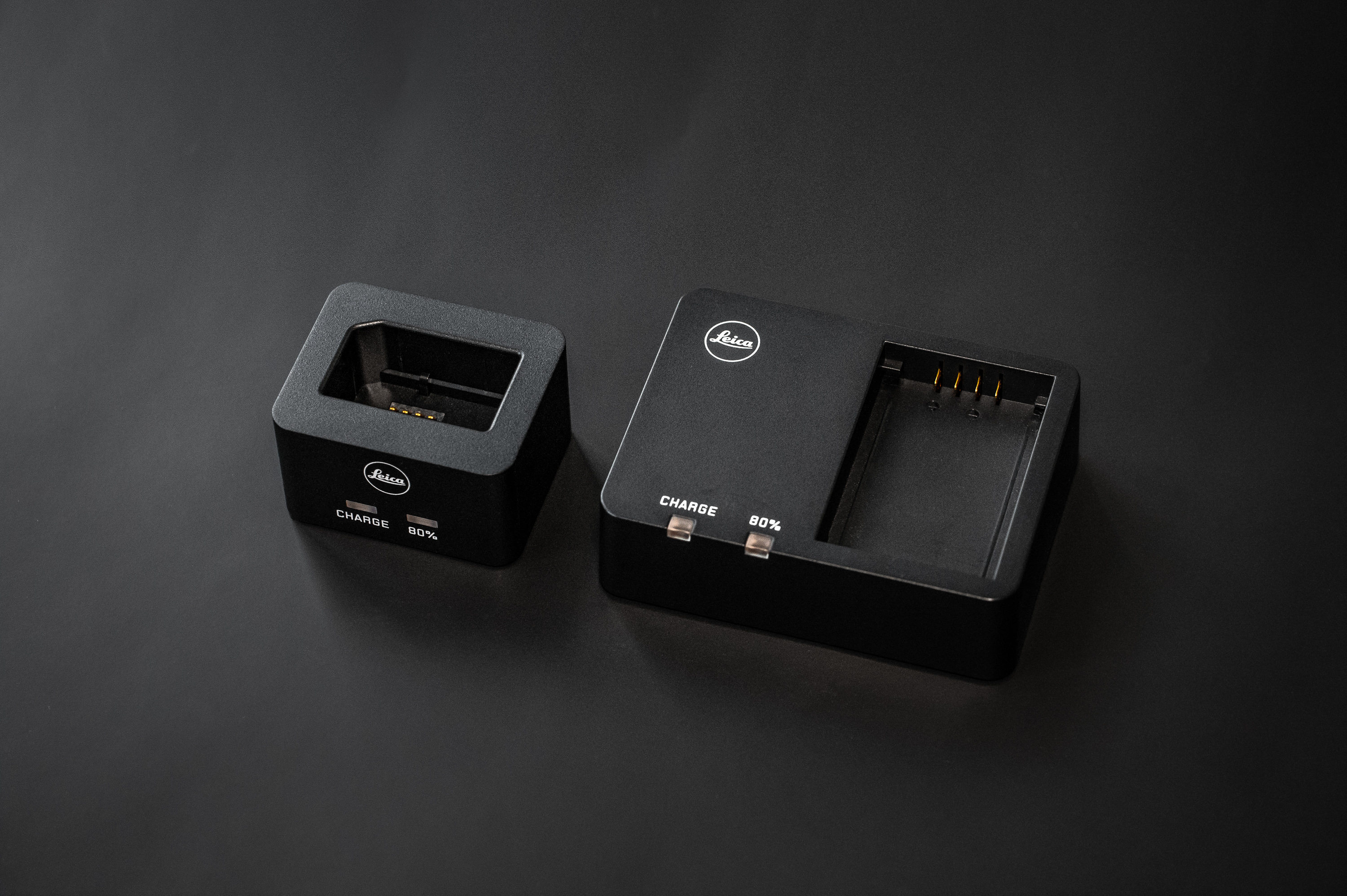 The charger itself is nicely designed, with two LED lights on the front, a single USB-C power-in port on the back, a slot for the battery on top, along with a set of low-profile anti-slip rubber feet on the bottom. When you insert the battery, gently press down on it and catches on either side snap into two small detents on the battery, securing it with a satisfying click. The battery is held in place and won’t fall out of the charger, even when inverted, yet the system doesn’t require a release. Just pull the battery while holding the charger and out it comes with minimal force. Two rectangular LED indicators function just like other modern Leica chargers. The amber charge light will flash with decreasing frequency as the battery nears completion, with the second green LED illuminating when reaching 80% capacity.