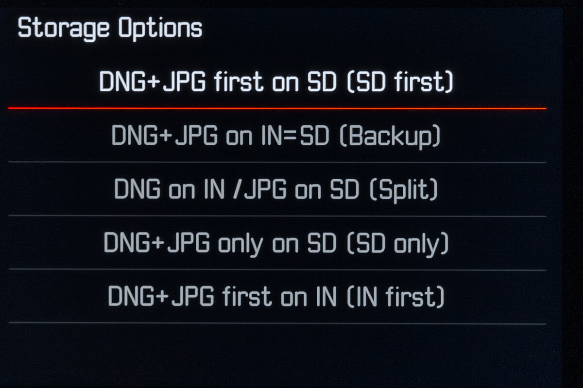 Beyond the covering-your-butt duty, Leica has added in some extra functionality. Due to space constraints in the slender M body, there simply isn’t room for a second SD card slot like in the SL2 and SL2-S. But you can set the camera to utilize the built-in memory like you would a second card slot. Use the default SD first setting to take advantage of the extra capacity once the SD card is full. Select the Backup (IN=SD) option to record a backup copy to the internal memory. If you shoot DNG+JPG, Split will save the DNG files to the internal memory and JPGs to the SD card. Unfortunately, I’d have preferred to see the exact opposite behavior here, with the larger DNG files going to the SD card and smaller JPGs going to the internal memory. Of course, you can opt out of using the internal memory completely by selecting SD Only. This would be my preference for most situations.