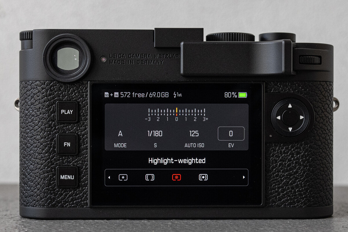 Removing the lens with the camera powered on reveals another subtle change. The sensor is exposed, with the shutter curtain opened. Even when not in Live View, the camera analyzes the scene based on information directly from the sensor rather than a traditional meter measuring light reflected off the shutter blades. In fact, the M11M has no internal light meter. Regardless of metering mode, Center-weighted, Highlight-weighted, Multifield or Spot, the sensor is actively being used to measure luminance of the scene. This makes the exceptional battery life even that much more impressive, and of course, the metering system is now as accurate as that in an advanced mirrorless system like the SL2. As I do with any camera that offers it, I prefer highlight-weighted metering. Protecting highlights is even more critical on the M11M with almost no highlight recoverability but 3-4 stops of reach in the shadows.