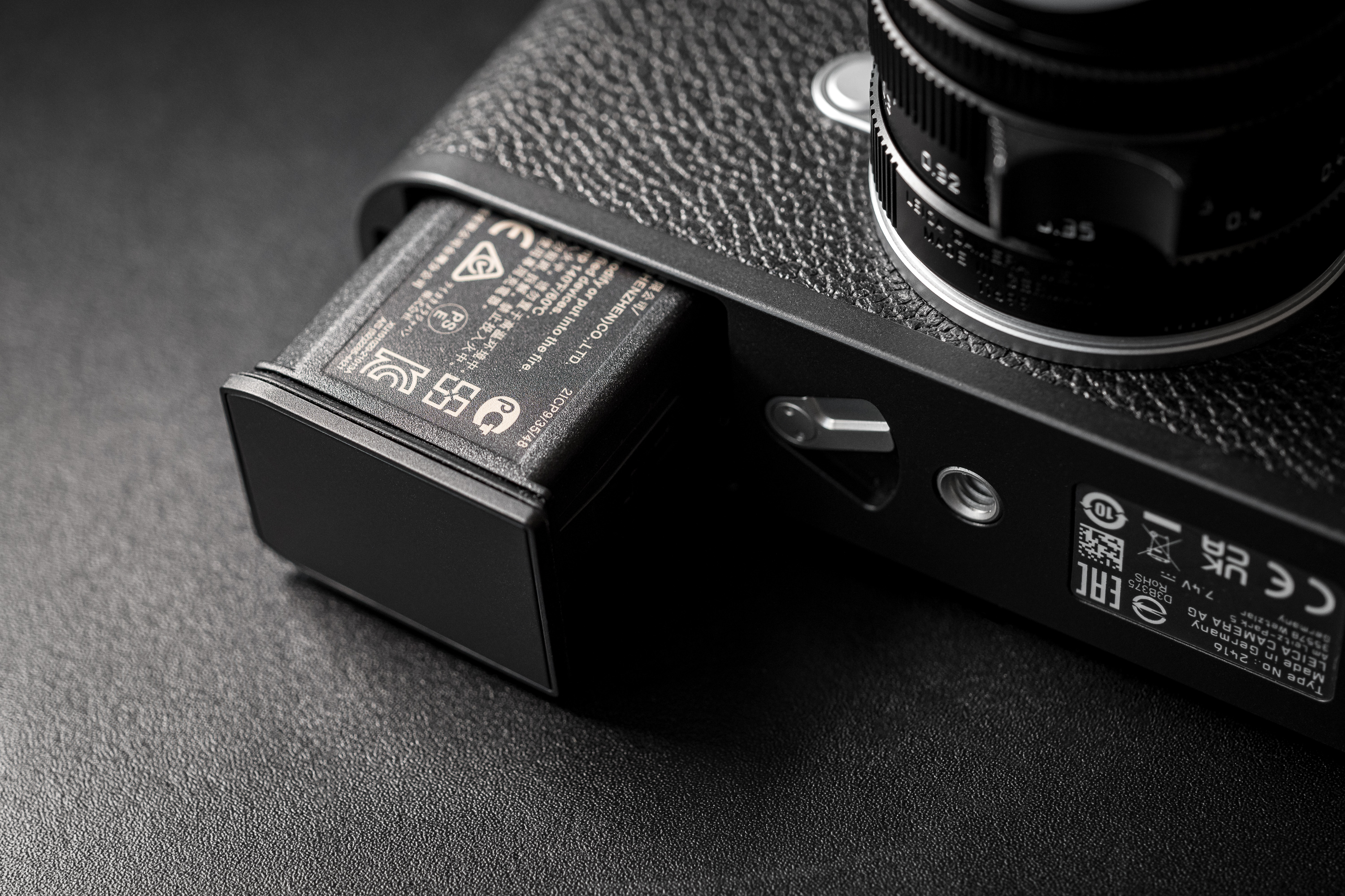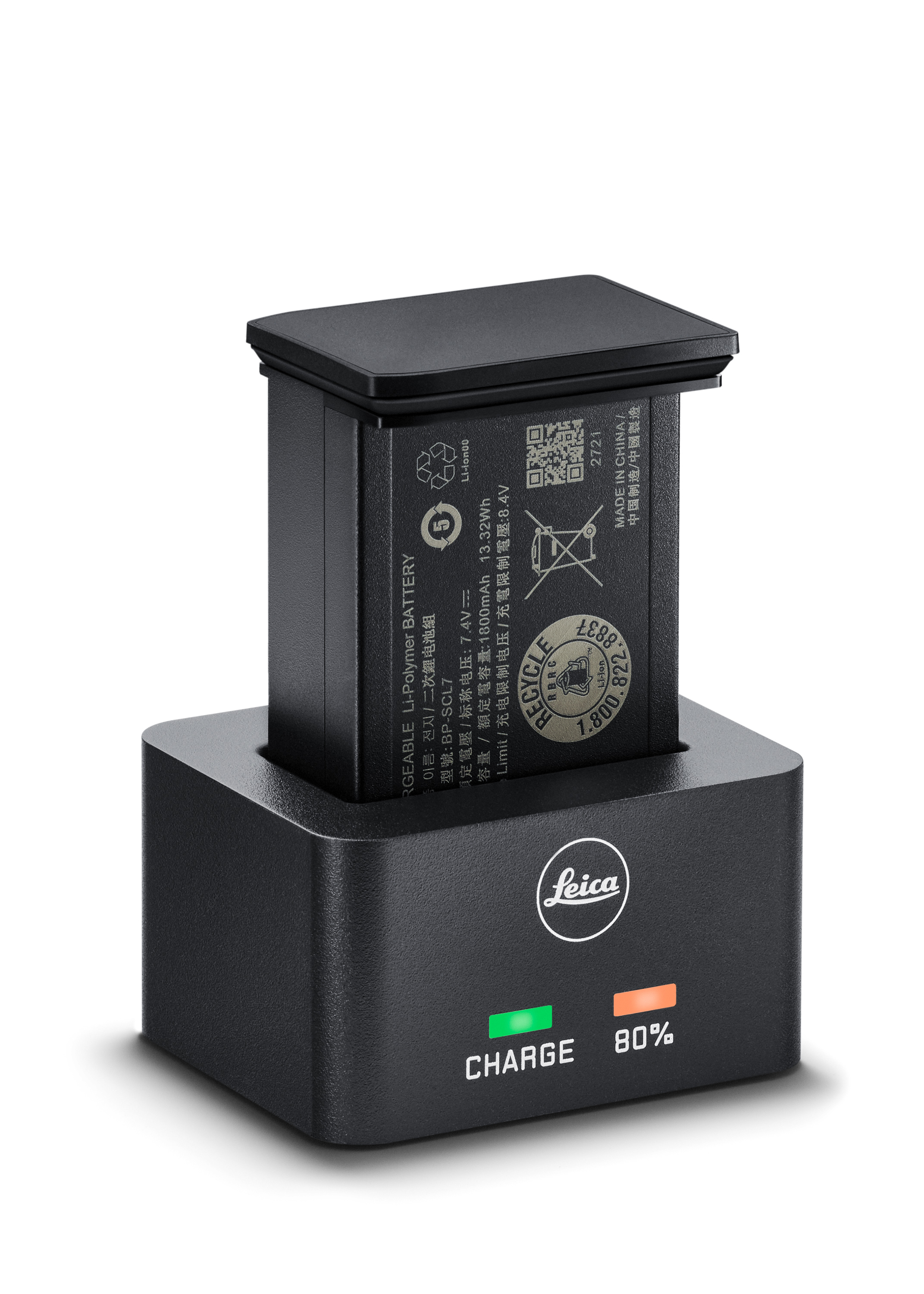 The charger itself is nicely designed, with two LED lights on the front, a single USB-C power-in port on the back, a slot for the battery on top, along with a set of low-profile anti-slip rubber feet on the bottom. When you insert the battery, gently press down on it and catches on either side snap into two small detents on the battery, securing it with a satisfying click. The battery is held in place and won’t fall out of the charger, even when inverted, yet the system doesn’t require a release. Just pull the battery while holding the charger and out it comes with minimal force. Two rectangular LED indicators function just like other modern Leica chargers. The amber charge light will flash with decreasing frequency as the battery nears completion, with the second green LED illuminating when reaching 80% capacity.