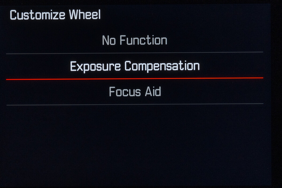 A subtle yet wonderful change that could easily go overlooked is the now clickable rear thumbwheel. Assignable to a custom function, Leica was able to add this additional control without cluttering up the minimalist design. Just like the rear FN button and top button, a long press brings up a list of selectable functions and a short press activates that option. During my testing, I assigned it to bring up exposure compensation, then used the wheel to quickly adjust. If you’re more inclined to have direct and nuanced control over ISO than the large whole steps on the dedicated ISO dial, you could assign M-ISO to the thumbwheel and have far more precise 1/3 steps. Or, for both functions, use the Customize Wheel menu to set the wheel to Exposure Compensation, then long-press to assign it to M-ISO. In this scenario, simply rotating left or right directly changes EV, but a short press in will activate the M-ISO menu on screen so you can select an ISO. Choices, choices.